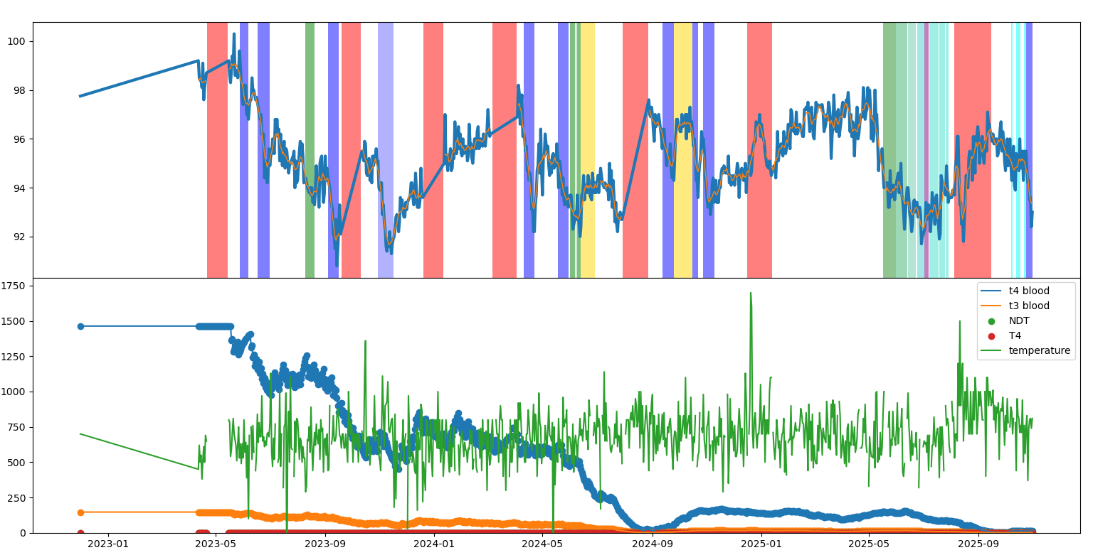 I also reckon I’ve got room to push my thyroid dose a little higher, my waking temperatures are now about 36.7C, still a smidge low according to Barnes, and the point where I top out, the graph looks clipped, and I start overheating seems to be about 36.8C these days, so I might try putting the dose up a tiny bit and seeing what happens.